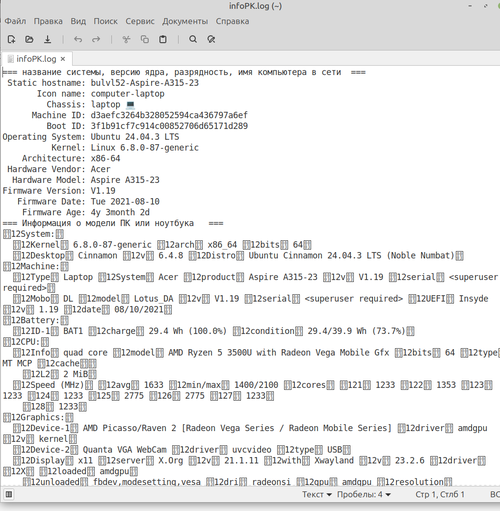 echo "=== Информация о модели ПК или ноутбука ===" | tee -a infoPK.log