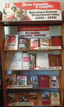 Библиотека: Городская библиотека № 1 Тип выставки: тематическая, внутри библиотечная. По времени действия: с 17 по 25 июня 2024г. Читательское назначение: для всех групп читателей. Целевое назначение: Выставка рассказывает о 1418 днях войны, о героическом подвиге советских людей в годы войны. Воспитывать чувство патриотизма и национальной гордости за русский народ. Привлечь внимание читателей к сохранению памяти о людях и событиях Великой Отечественной войны. Оформление выставки: книги, арт-объекты. Месторасположение выставки: читальный зал библиотеки. Эффективность выставки: заинтересовала все группы читателей. Средство рекламы: информирование на сайте. Просмотрело: 85 человек. Выдано: 3 экземпляра книг.