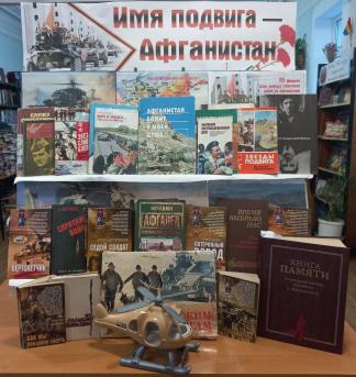 Библиотека: Отдел обслуживания МБУК «МЦРБ». Тип выставки: тематическая, внутрибиблиотечная. По времени действия: с 10 по 17 февраля. Читательское назначение: для всех групп читателей. Целевое назначение: познакомить с событиями Афганской войны; показать подвиг и героизм советских солдат; способствовать развитию интереса к истории своей Родины; воспитание патриотизма через уважительное отношение к событиям, связанным с армией; знакомство с творчеством воинов-афганцев и участников локальных войн; формирование толерантности и гуманности. Оформление выставки: книги, иллюстрации, периодические издания, арт-объекты. Месторасположение выставки: читальный зал библиотеки. Эффективность выставки: заинтересовала все категории читателей. Средство рекламы: информация о выставке на библиотечном сайте, в социальной сети «В Контакте».