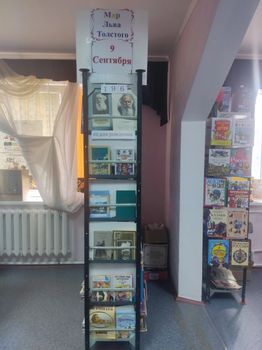 Жизнь и творчество Л.Н. Толстого: материалы для выставки в школе и детской библиотеке/ Сост. Н.И. Азаровой; оформл. Г. Ордынского. – Переизд. – М.: Детская литература, 1988. – 15 с.: фотоил. – (Выставка в школе).