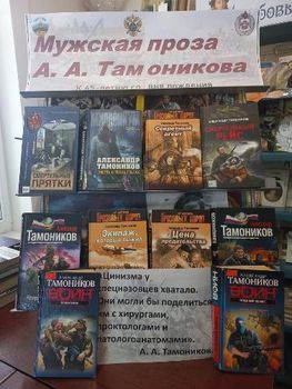 Библиотека: Отдел обслуживания МБУК «МЦРБ». Тип выставки: тематическая, внутрибиблиотечная. По времени действия: с 11 по 29 июля. Читательское назначение: для всех групп читателей. Целевое назначение: познакомить пользователей с творчеством А. А. Тамоникова. Оформление выставки: книги, периодические издания, иллюстрации. Месторасположение выставки: абонемент библиотеки. Средство рекламы: размещена в соц. сети «В Контакте». Цитата: «Есть враг, которого нужно уничтожать. А о том, что чувствуют люди, мы позднее у них спросим». А. А. Тамоников Литература: 1. Тамоников, А. А. Женщина, вернувшаяся с холода /А. А. Тамоников. - Москва: Эксмо, 2013. - 320 с. 2. Тамоников, А. А. Морские хищники /А. А. Тамоников. - Москва: Эксмо, 2013. - 352 с. 3. Тамоников, А. А. Непревзойденные /А. А. Тамоников. - Москва: Эксмо, 2013. - 352 с. 4. Тамоников, А. А. Огненный голос /А. А. Тамоников. - Москва: Эксмо, 2012. - 416 с. 5. Тамоников, А. А. Побратимы /А. А. Тамоников. - Москва: Эксмо, 2012. - 352 с. 6. Тамоников, А. А. Секретный агент /А. А. Тамоников. - Москва: Эксмо, 2007. - 384 с. 7. Тамоников, А. А. Смертельный рейс /А. А. Тамоников. - Москва: Эксмо, 2022. - 288 с. 8. Тамоников, А. А. Смертельные прятки /А. А. Тамоников. - Москва: Эксмо, 2021. - 320 с. 9. Тамоников, А. А. Смерть в твоих глазах /А. А. Тамоников. - Москва: Эксмо, 2013. - 416 с. 10. Тамоников, А. А. Цена предательства /А. А. Тамоников. - Москва: Эксмо, 2008. - 384 с. 11. Тамоников, А. А. Экипаж, который выжил /А. А. Тамоников. - Москва: Эксмо, 2012. - 352 с. | |