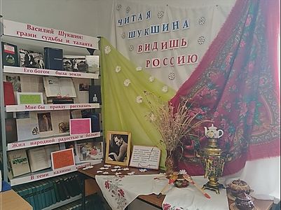 Библиотека: Городская библиотека им. А.Снитко Тип выставки: внутрибиблиотечная, персональная По времени действия: с 15 по 30 июля 2024 г. Читательское назначение: для всех категорий пользователей библиотеки Целевое назначение: познакомить пользователей библиотеки с жизнью и творчеством В.М. Шукшина; на примере жизни писателя, для молодых пользователей библиотеки, показать глубокое чувство патриотизма, интереса и любви к «малой родине». Оформление выставки: книги, журналы, фотографии, рубрики, цитаты, инсталляция «Читая Шукшина – видишь Россию». Месторасположение: читальный зал библиотеки. Эффективность выставки: заинтересовала все категории пользователей Средство рекламы: информация на библиотечном сайте. Выдано: 10 экземпляров.