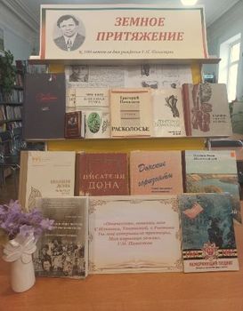Библиотека: Отдел обслуживания МБУК «МЦРБ». Тип выставки: тематическая, внутрибиблиотечная. По времени действия: выставка организована с 10 ноября по 9 декабря. Читательское назначение: для всех групп читателей. Целевое назначение: познакомить пользователей с жизнью и творчеством донского поэта Г.П. Помазкова; прививать любовь к русской поэзии. Оформление выставки: книги, иллюстрации, периодические издания, арт-объекты. Месторасположение выставки: читальный зал библиотеки. Эффективность выставки: заинтересовала все категории читателей. Средство рекламы: информация о выставке на библиотечном сайте, соц. сети «В Контакте».