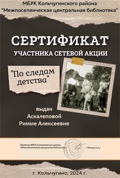 «По следам детства» Городская библиотека № 1 присоединяется к сетевой акции "По следам детства". Организатор акции - МБУК Кольчугинского района "Межпоселенческая центральная библиотека".
