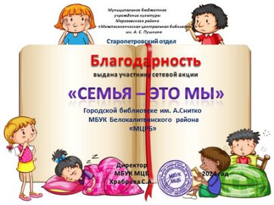 Семья – это Мы Городская библиотека им.А.Снитко "принимала участие в сетевой акции "Семья — это Мы", посвящённой Году Семьи в России. https://vk.com/snitko.kalitva?w=wall-210084977_437