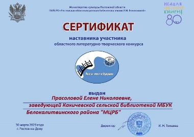 Областной литературно- творческий конкурс «Книга – мост в будущее» Наш юный читатель - Минеева Варвара, заняла 2 место по итогам ежегодного областного литературно-творческого конкурса «Книга - мост в будущее» в номинации «Фантасты- фантазеры». На конкурс было представлено сочинение «Тайна заброшенной пещеры» о донском крае будущего. Организатор конкурса: Ростовская областная детская библиотека имени В. М. Величкиной. Немного о конкурсе и празднике: В этом году конкурс и итоговый праздник назывался «Книга – мост в будущее». К участию в нём приглашались читатели от 5 до 14 лет, а кураторами конкурса в муниципальных образованиях стали детские библиотеки Ростовской области. В конкурсе приняли участие 942 читателя библиотек из 27 муниципальных образований (21 район и 6 городов) Ростовской области. Праздник состоялся на площадке Донской государственной публичной библиотеки. Почетными гостями праздника стали: начальник отдела по вопросам образования, культуры и внутренней политики Правительства Ростовской области Говоркова Анна Александровна и начальник управления библиотеками, музеями и культурно-досуговыми учреждениями министерства культуры Ростовской области Фомичева Татьяна Николаевна. Для юных гостей праздник начался с квеста «Воспоминания о книгах», включающего пять станций с непростыми, но интересными заданиями. Необходимо было пройти все локации квеста по маршрутному листу, выполнить задания и помочь людям будущего, роль которых исполнили студенты Ростовского колледжа культуры, узнать, что такое книга и библиотека. Привлекла внимание выставка творческих работ участников конкурса «Книга – мост в будущее».