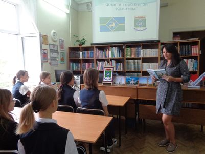 23 сентября Районная детская библиотека имени А. П. Гайдара провела информационный час для учащихся 7 «В» класса МБОУ СОШ № 2 «Край родной в гербах и флагах». Из беседы ребята узнали историю родного края и города, ознакомились с символами-гербом и флагом Белокалитвинского района. Состоялась беседа «Герб и флаг символы малой родины». Ребята узнали, когда впервые появилась символика, и что она символизирует, кем и когда была принята. Затем состоялся обзор книжной выставки «Милая сердцу моя Калитва». Листая книги, ребята открыли для себя много интересного по истории родного города. Все книги, представленные на выставке, были направлены на воспитание патриотизма, любви к малой Родине, уважительного отношения к геральдике.