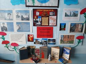 В Марьевской сельской библиотеке для подростков прошел урок памяти «Ты в памяти и в сердце, Сталинград!». Ребятам узнали об одной из величайших битв, о сражении, которое стало символом величия духа нашего народа. Говорили о подвигах защитников города: Якове Павлове - командире группы бойцов защищавших 58 дней дом в центре города, о снайпере Василии Зайцеве, уничтожившего 225 немецких солдат и офицеров, о Михаиле Паникахе, который ценой своей жизни остановил немецкий танк создающий угрозу батальону советских солдат, Матвее Путилове, терявшем сознание, не имея возможности действовать руками восстановившем связь зубами, о Гуле Королевой, которая вынесла с поля боя 50 раненных бойцов, уничтожила гранатами 15 фашистов и смертельно раненая продолжала вести бой, пока оружие не выпало из рук. Дети познакомились с представленной выставкой «Ты выстоял, Великий Сталинград» и книгами о Великой Отечественной войне, в которых описываются события Сталинградской битвы. Завершилось мероприятие минутой молчания в память о погибших в боях за город- герой.