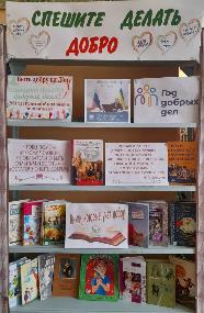 Всех нужнее и дороже в этом мире доброта 6 сентября в Шолоховской поселковой библиотеке для воспитанниц 6 взвода Мариинской гимназии прошел урок доброты «Всех нужнее и дороже в этом мире доброта». Цель которого, сформировать у учащихся представление о добре, добрых делах. В начале с девочками состоялся разговор о доброте, что такое доброта, как они понимают это слово, какого человека можно назвать добрым. Они узнали о том, как важна доброта для людей. Обсудили различные жизненные ситуации о доброте по отношению к людям. Гимназистки отвечали на задания ситуационной игры «Добрые дела», в игре «Волшебное слово» под рифму подбирали слова. С огромным интересом девочки приняли участие в игре «Сердечко доброты», передавая его, они говорили друг другу добрые слова. Посмотрев презентацию «Доброта творит чудеса» мы вместе вспомнили пословицы и поговорки о доброте, добрые слова, поговорили о качествах, которыми должен обладать добрый человек, и какие поступки его украшают. К Году добрых дел на Дону в библиотеке оформлена книжная выставка «Спешите делать добро» на которой представлена подборка произведений, которые дадут настоящий урок доброты.