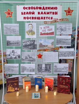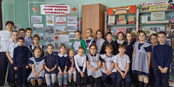 Час памяти «Помнит подвиг земля родная» В Шолоховской поселковой библиотеке прошел час памяти к освобождению Белой Калитвы от немецко-фашистских оккупантов «Помнит подвиг земля родная». Участие в нем приняли ученики 2 «В» класса МБОУ СОШ № 8. Учащимся рассказали, что 19 января вошел в историю Донского края как День освобождения города Белая Калитва от немецко-фашистских захватчиков. Черные дни для белокалитвинцев начались с 20 июля 1942 по 19 января 1943 года, когда наш город находился в оккупации. Фашисты взорвали и затопили шахты, взорвали мосты, расстреливали людей, многих жителей Белой Калитвы угнали в Германию. В ночь на 19 января 1943 года наши войска ворвались в Белую Калитву. После упорного короткого боя противник отступил на правый берег Донца и укрепился на возвышенности. Оттуда немцы просматривали все подходы к плацдарму. Дети узнали о подвиге взвода лейтенанта Аннаклыча Атаева, посмертно удостоенного звания Героя Советского Союза. Его бойцы героически удерживали высоту 79,9 на правой стороне Северского Донца. Все они героически погибли, но высота не была сдана. Высоту 79,9 назвали Высотой Бессмертия. Высокой ценой оплачено освобождение нашего города. Признанием стойкости и мужества защитников в годы Великой Отечественной войны стало присвоение городу Белая Калитва почетного звания «Город воинской доблести». Ребята с большим вниманием и волнением посмотрели отрывки из документальной видео - хроники. В библиотеке к этому дню была оформлена выставка «Освобождению Белой Калитвы посвящается…». По окончании встречи участники почтили минутой молчания всех погибших при освобождении нашего города.